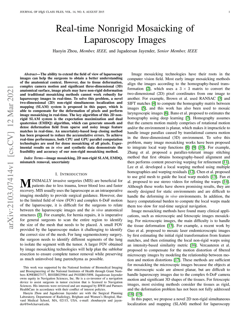 Real-time Nonrigid Mosaicking of Laparoscopy Images