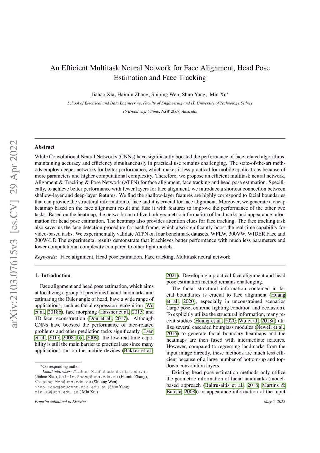 An Efficient Multitask Neural Network for Face Alignment, Head Pose