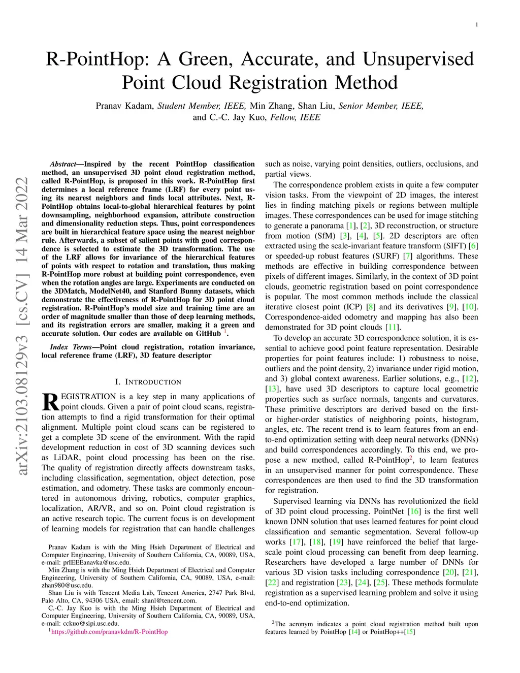R-PointHop: A Green, Accurate, and Unsupervised Point Cloud Registration