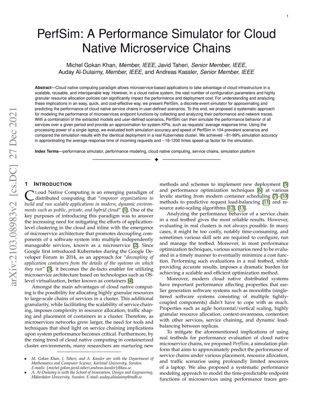 PerfSim: A Performance Simulator for Cloud Native Microservice Chains
