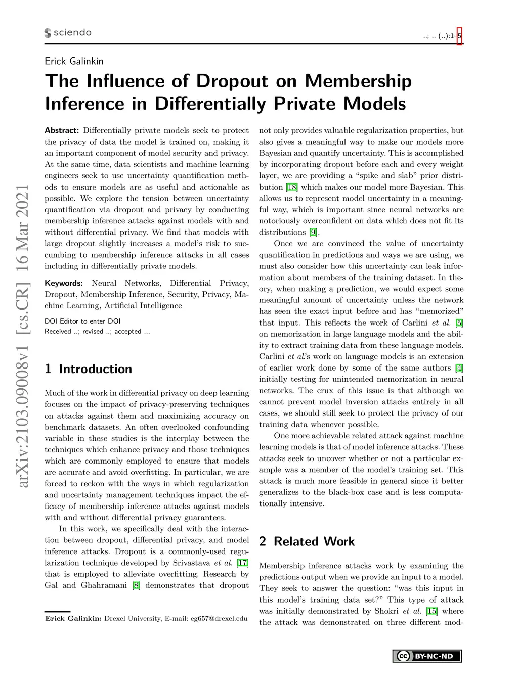 Differentially private models seek to protect the privacy of data the model is trained on, making it an important component of model security and privacy. At the same time, data scientists and machine learning engineers seek to use uncertainty quantification methods to ensure models are as useful and actionable as possible. We explore the tension between uncertainty quantification via dropout and privacy by conducting membership inference attacks against models with and without differential privacy. We find that models with large dropout slightly increases a model's risk to succumbing to membership inference attacks in all cases including in differentially private models.