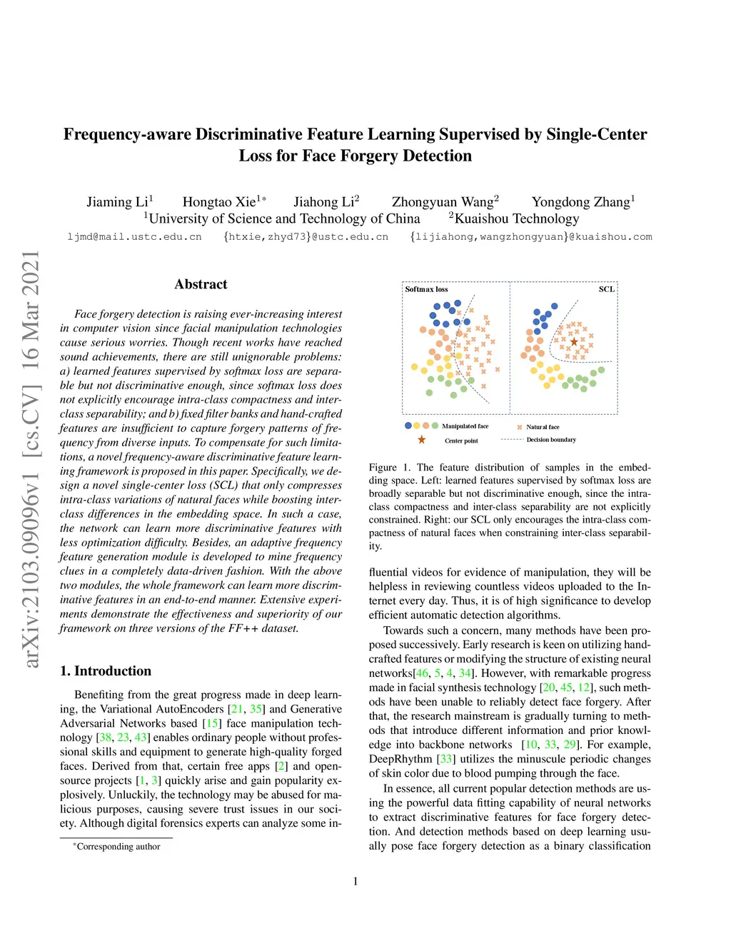 Single-Center Loss for Face Forgery Detection