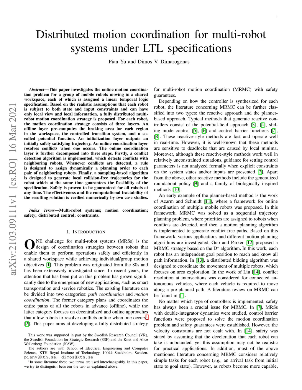 Distributed motion coordination for multi-robot systems under LTL