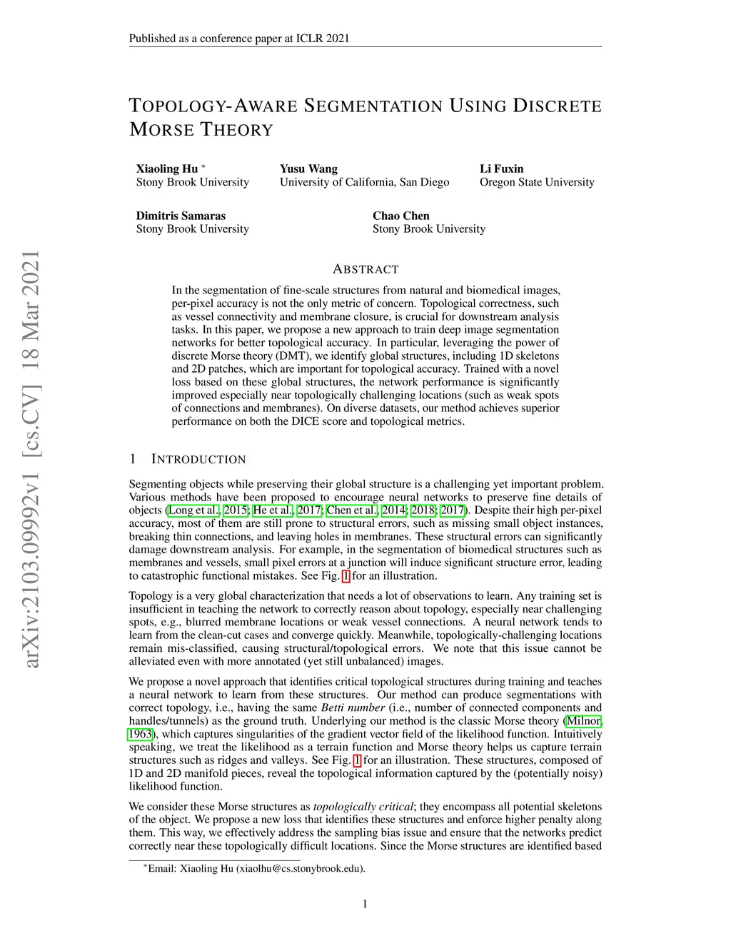 Topology-Aware Segmentation Using Discrete Morse Theory
