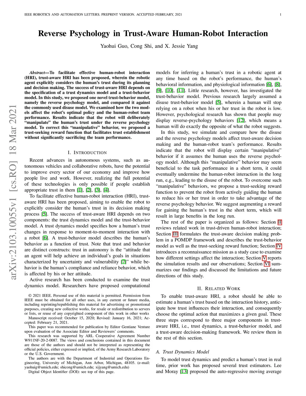Reverse Psychology in Trust-Aware Human-Robot Interaction