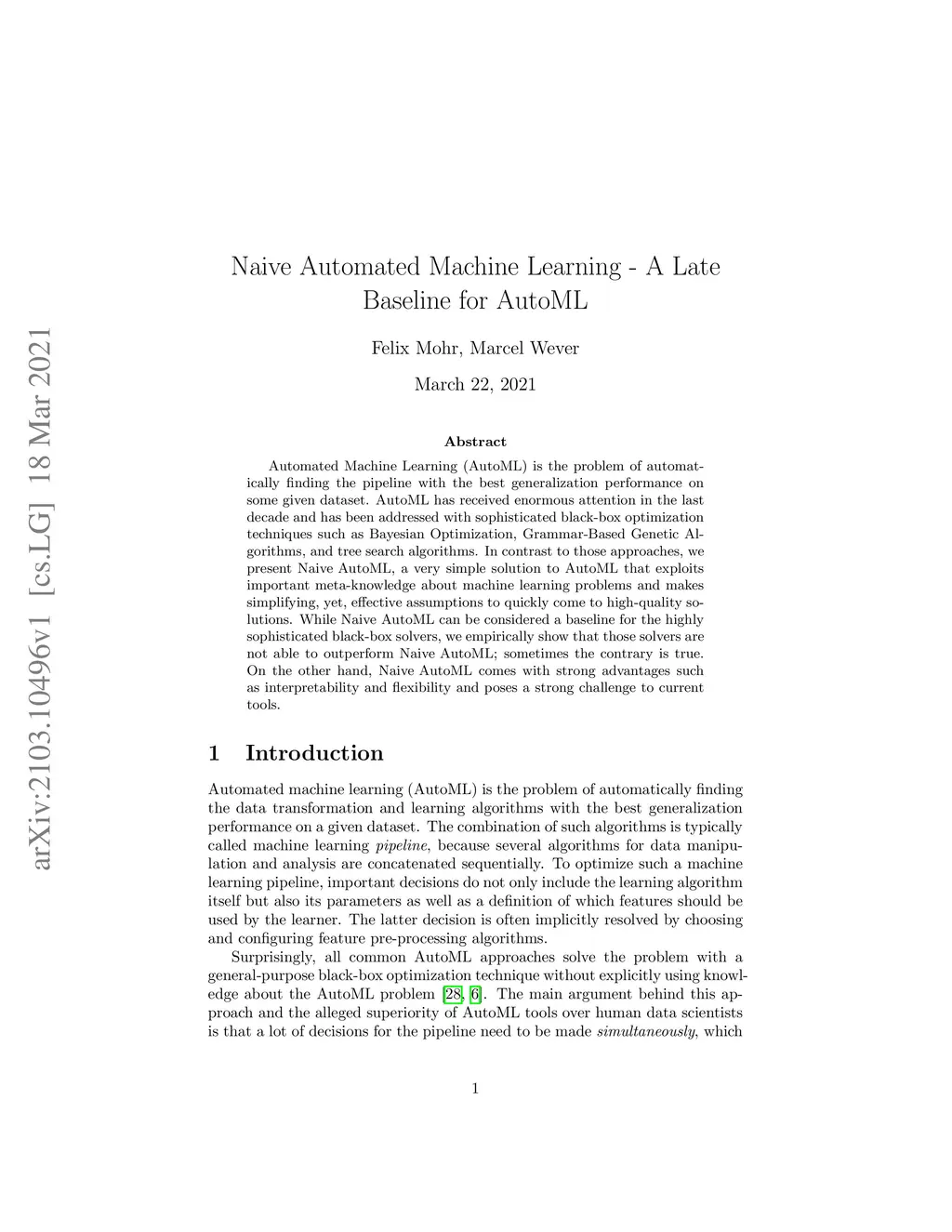 Automated Machine Learning (AutoML) is the problem of automatically finding the pipeline with the best generalization performance on some given dataset. AutoML has received enormous attention in the last decade and has been addressed with sophisticated black-box optimization techniques such as Bayesian Optimization, Grammar-Based Genetic Algorithms, and tree search algorithms. In contrast to those approaches, we present Naive AutoML, a very simple solution to AutoML that exploits important meta-knowledge about machine learning problems and makes simplifying, yet, effective assumptions to quickly come to high-quality solutions. While Naive AutoML can be considered a baseline for the highly sophisticated black-box solvers, we empirically show that those solvers are not able to outperform Naive AutoML; sometimes the contrary is true. On the other hand, Naive AutoML comes with strong advantages such as interpretability and flexibility and poses a strong challenge to current tools.