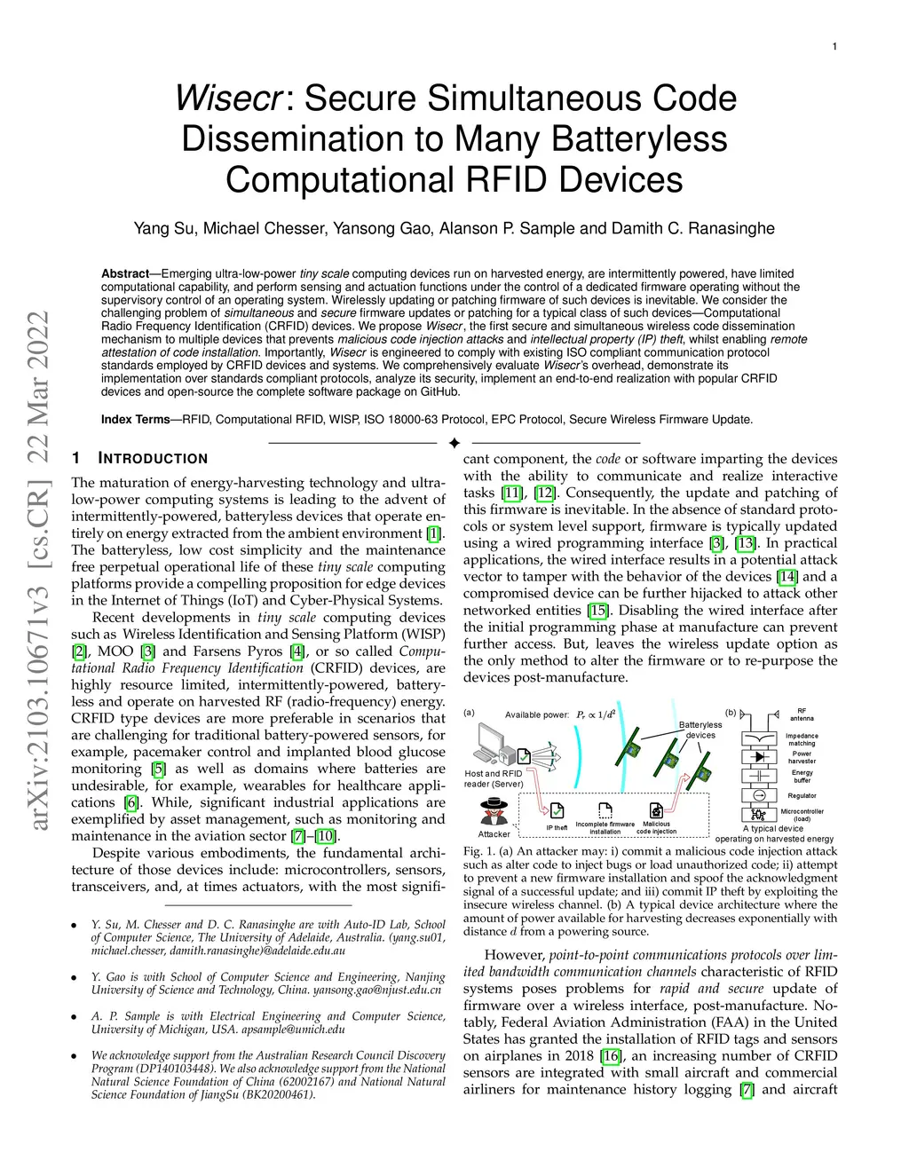 Wisecr: Secure Simultaneous Code Disseminationto Many Batteryless