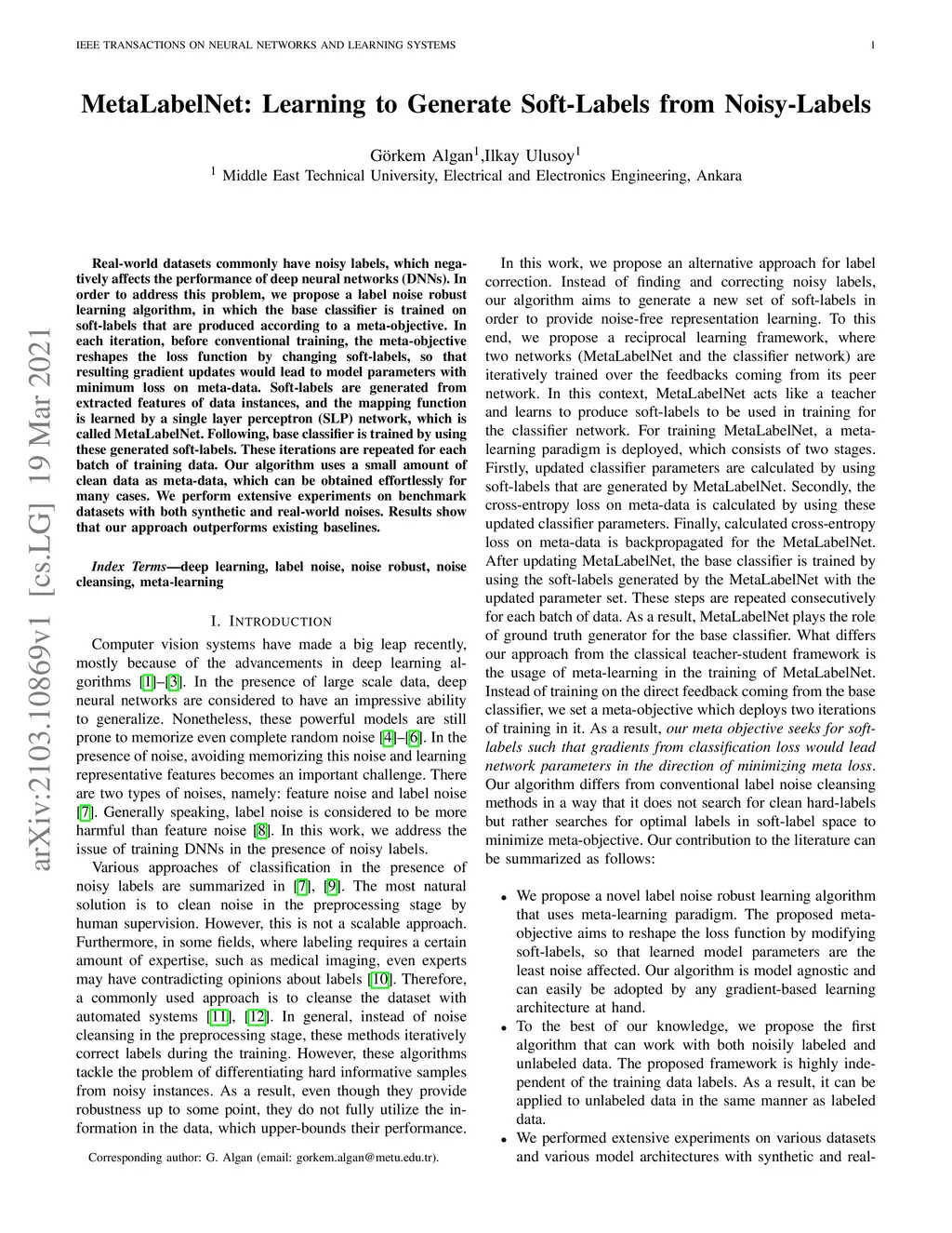 MetaLabelNet: Learning to Generate Soft-Labels from Noisy-Labels
