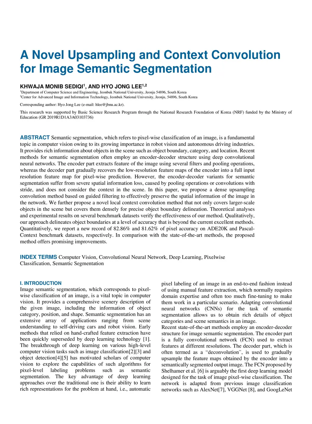 Semantic segmentation, which refers to pixel-wise classification of an image, is a fundamental topic in computer vision owing to its growing importance in robot vision and autonomous driving industries. It provides rich information about objects in the scene such as object boundary, category, and location. Recent methods for semantic segmentation often employ an encoder-decoder structure using deep convolutional neural networks. The encoder part extracts feature of the image using several filters and pooling operations, whereas the decoder part gradually recovers the low-resolution feature maps of the encoder into a full input resolution feature map for pixel-wise prediction. However, the encoder-decoder variants for semantic segmentation suffer from severe spatial information loss, caused by pooling operations or convolutions with stride, and does not consider the context in the scene. In this paper, we propose a dense upsampling convolution method based on guided filtering to effectively preserve the spatial information of the image in the network. We further propose a novel local context convolution method that not only covers larger-scale objects in the scene but covers them densely for precise object boundary delineation. Theoretical analyses and experimental results on several benchmark datasets verify the effectiveness of our method. Qualitatively, our approach delineates object boundaries at a level of accuracy that is beyond the current excellent methods. Quantitatively, we report a new record of 82.86% and 81.62% of pixel accuracy on ADE20K and Pascal-Context benchmark datasets, respectively. In comparison with the state-of-the-art methods, the proposed method offers promising improvements.