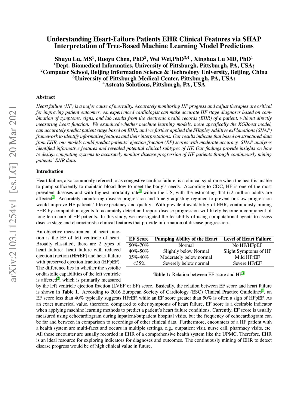 Understanding Heart-Failure Patients EHR Clinical Features via SHAP