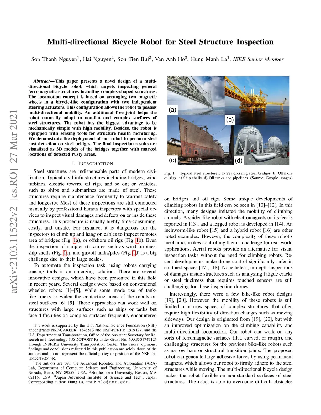 Multi-directional Bicycle Robot for Steel Structure Inspection