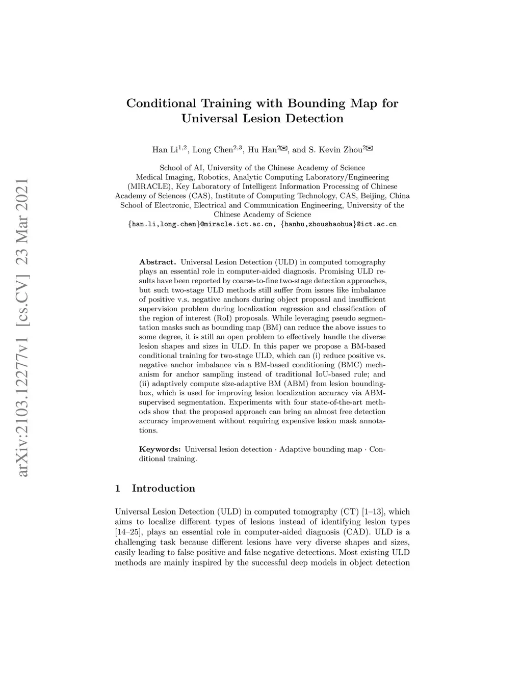 Conditional Training with Bounding Map for Universal Lesion Detection