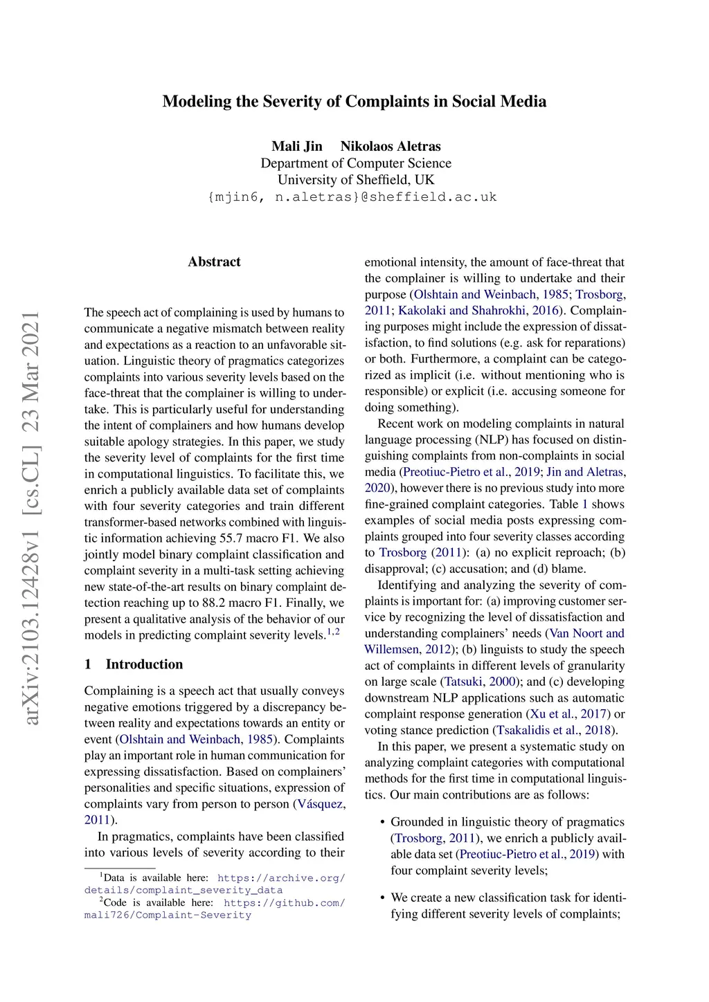 Modeling the Severity of Complaints in Social Media