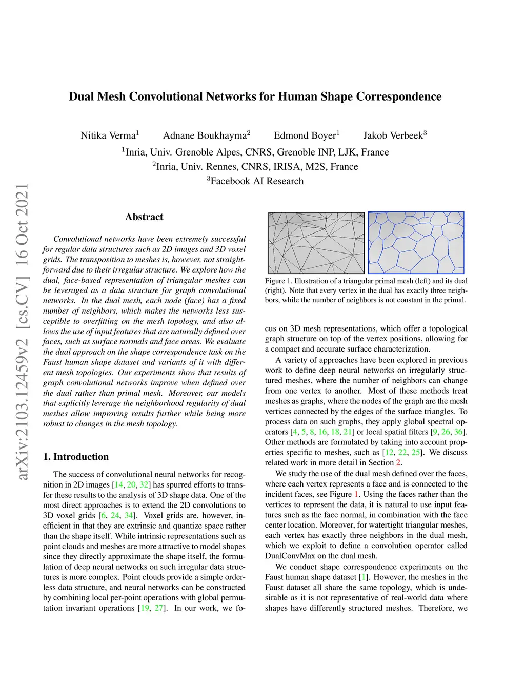 Dual Mesh Convolutional Networks for Human Shape Correspondence