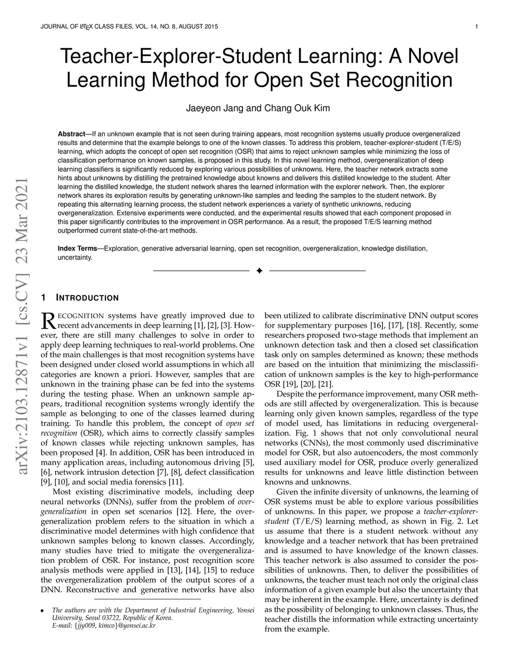 Teacher-Explorer-Student Learning: A Novel Learning Method for Open Set