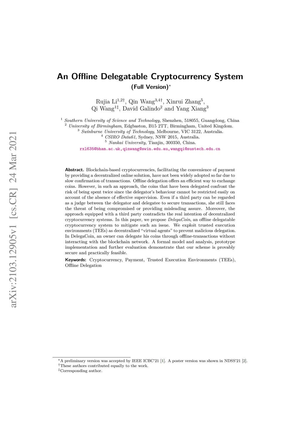 An Offline Delegatable Cryptocurrency System