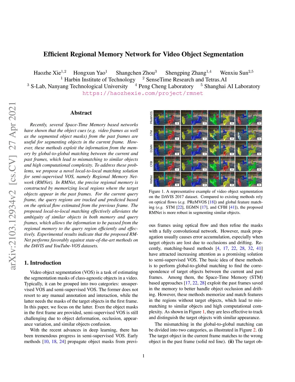 Efficient Regional Memory Network for Video Object Segmentation