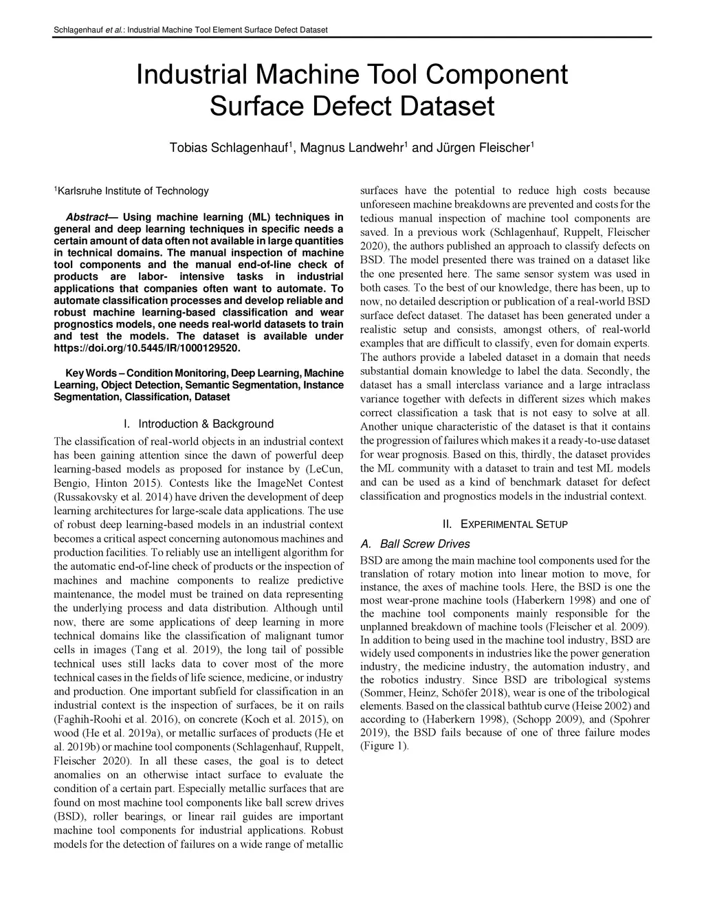 Using machine learning (ML) techniques in general and deep learning techniques in specific needs a certain amount of data often not available in large quantities in technical domains. The manual inspection of machine tool components and the manual end-of-line check of products are labor-intensive tasks in industrial applications that companies often want to automate. To automate classification processes and develop reliable and robust machine learning-based classification and wear prognostics models, one needs real-world datasets to train and test the models. The dataset is available under https://doi.org/10.5445/IR/1000129520.