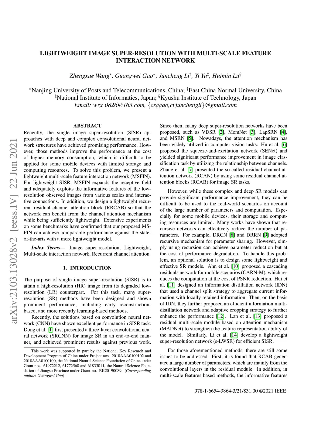 Lightweight Image Super-Resolution with Multi-scale Feature Interaction