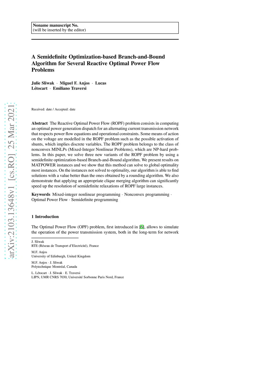 Reactive Optimal Power Flow Problems