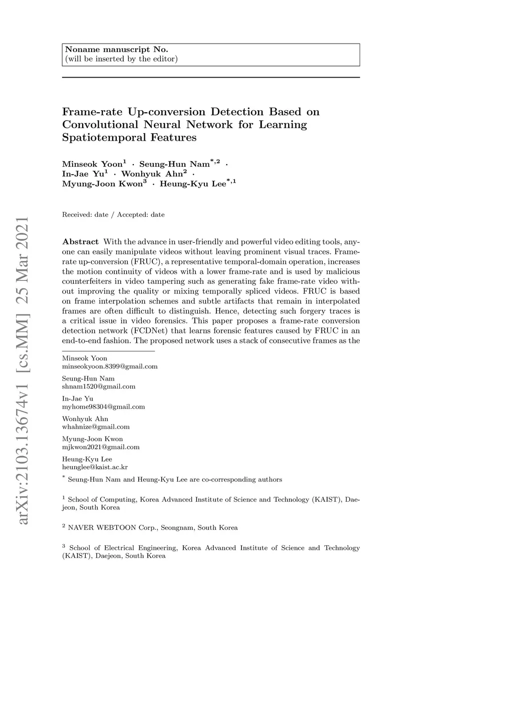 Frame-rate Up-conversion Detection Based on Convolutional Neural Network