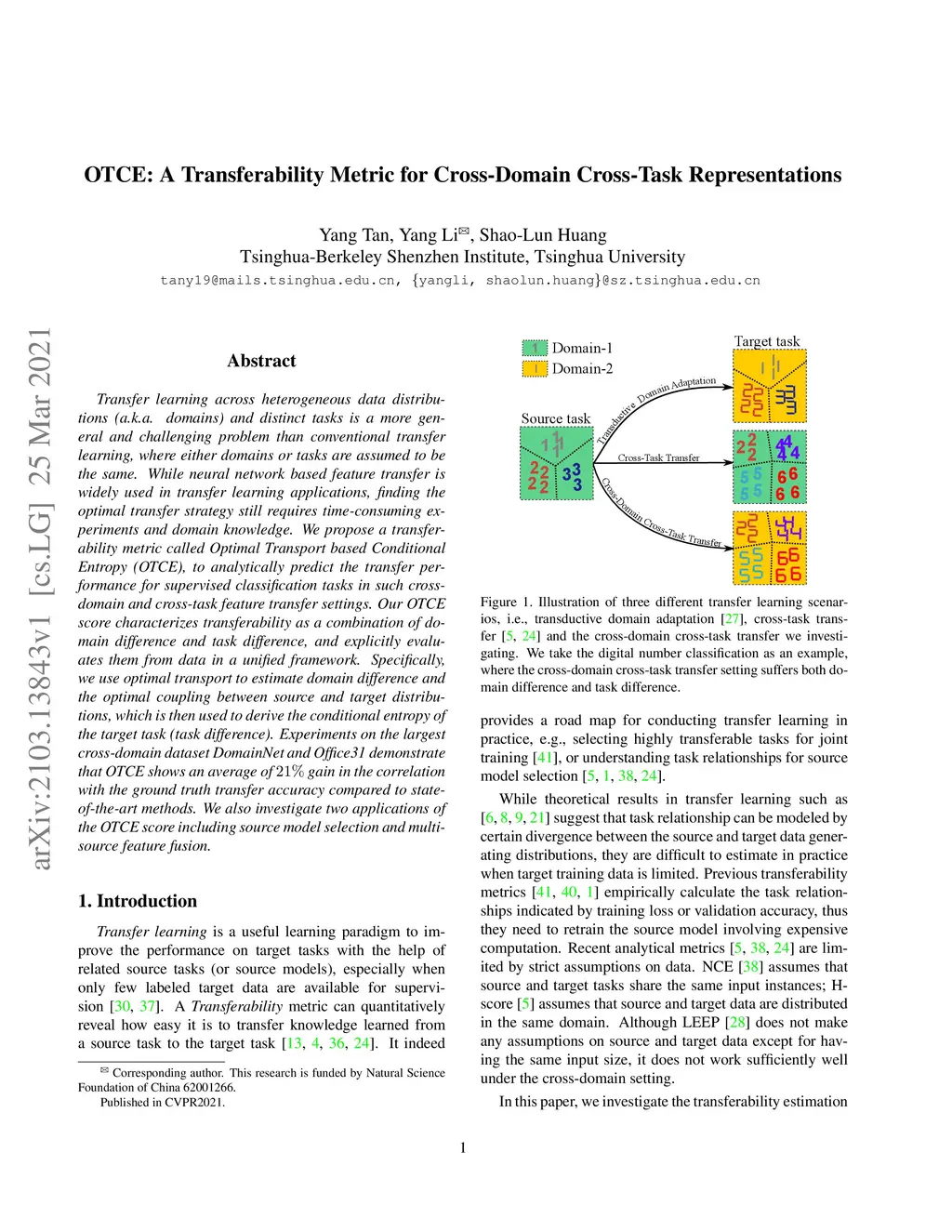 OTCE: A Transferability Metric for Cross-Domain Cross-Task
