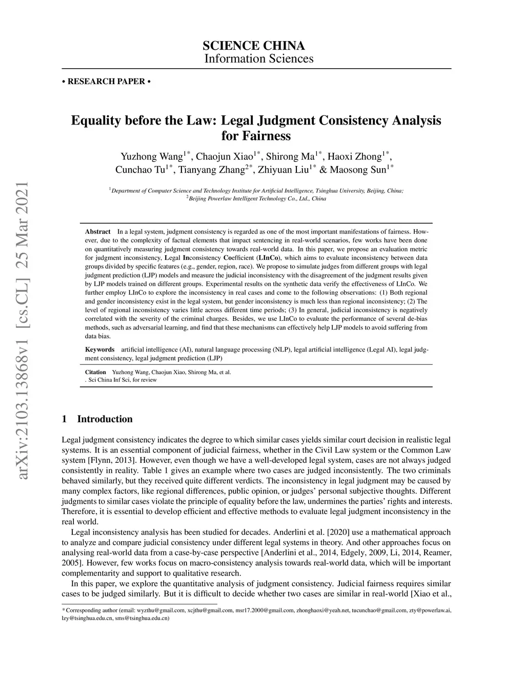 Equality before the Law: Legal Judgment Consistency Analysis for