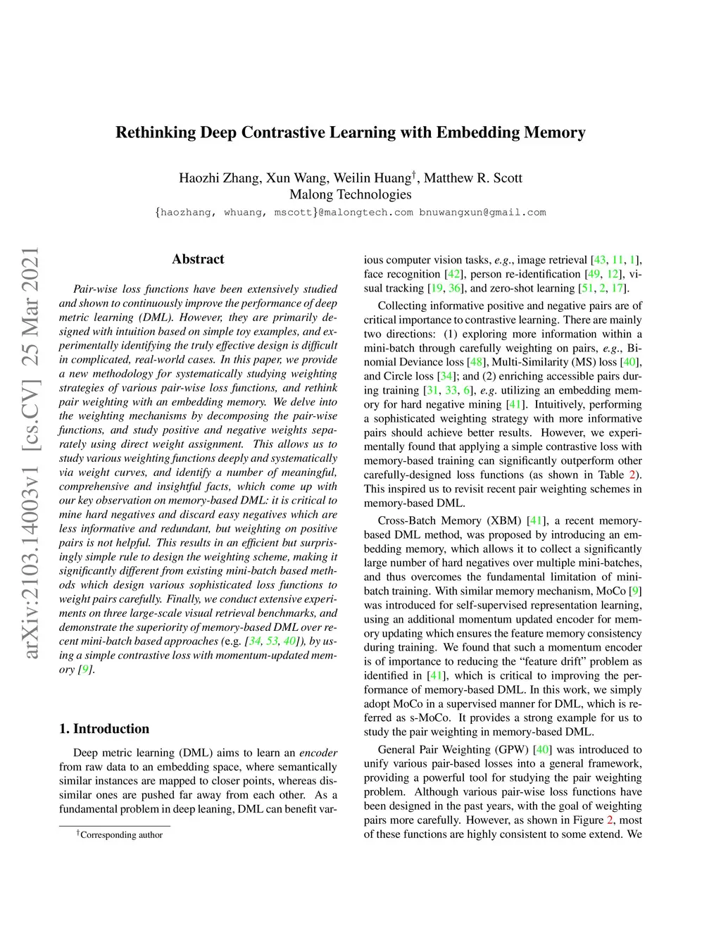 Rethinking Deep Contrastive Learning with Embedding Memory