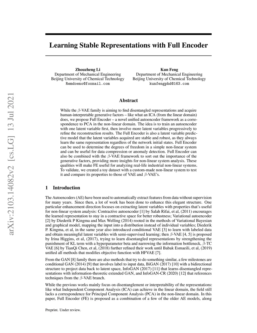 While the beta-VAE family is aiming to find disentangled representations and acquire human-interpretable generative factors, like what an ICA (from the linear domain) does, we propose Full Encoder, a novel unified autoencoder framework as a correspondence to PCA in the non-linear domain. The idea is to train an autoencoder with one latent variable first, then involve more latent variables progressively to refine the reconstruction results. The Full Encoder is also a latent variable predictive model that the latent variables acquired are stable and robust, as they always learn the same representation regardless of the network initial states. Full Encoder can be used to determine the degrees of freedom in a simple non-linear system and can be useful for data compression or anomaly detection. Full Encoder can also be combined with the beta-VAE framework to sort out the importance of the generative factors, providing more insights for non-linear system analysis. These qualities will make FE useful for analyzing real-life industrial non-linear systems. To validate, we created a toy dataset with a custom-made non-linear system to test it and compare its properties to those of VAE and beta-VAE's.