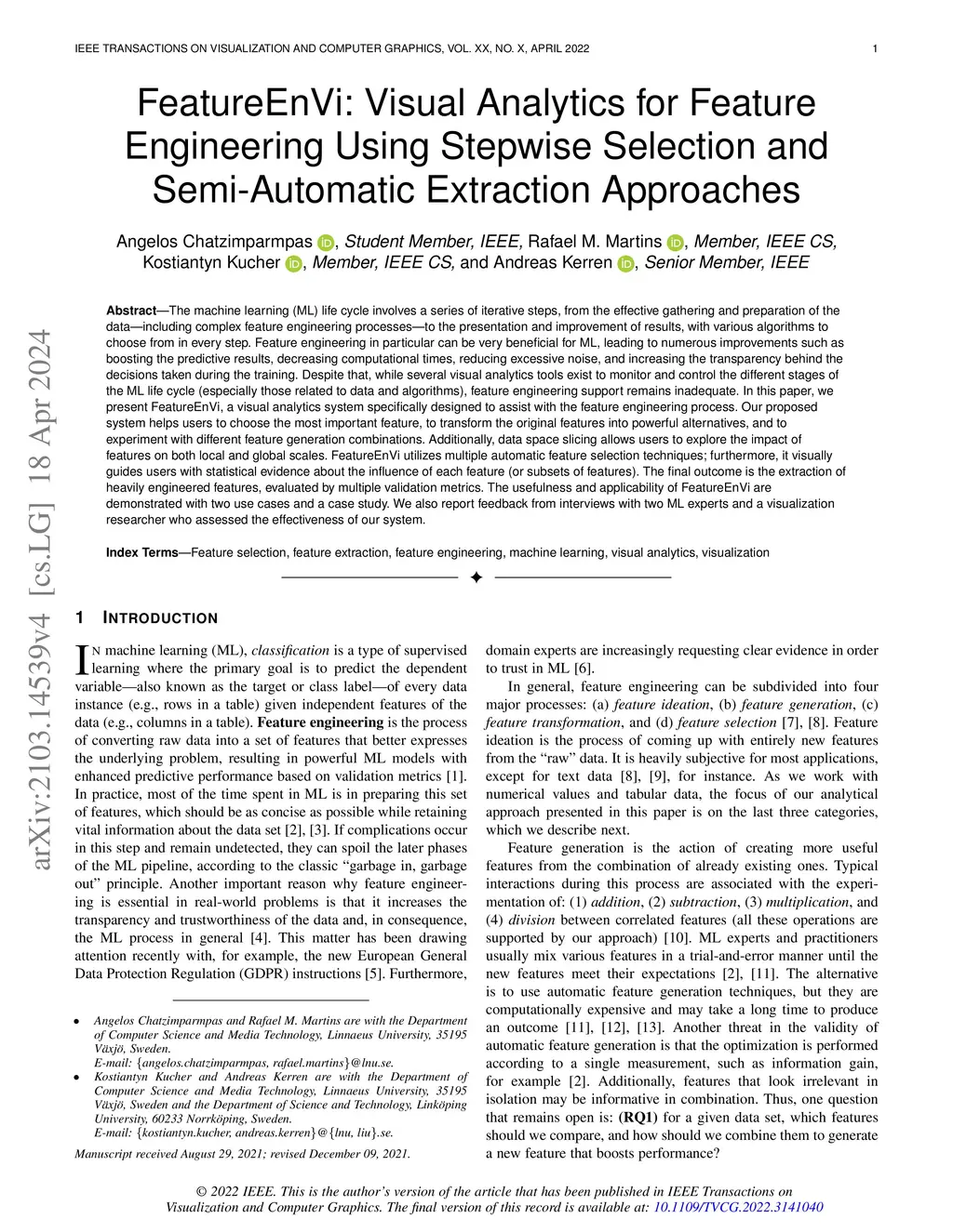 FeatureEnVi: Visual Analytics for Feature Engineering Using Stepwise