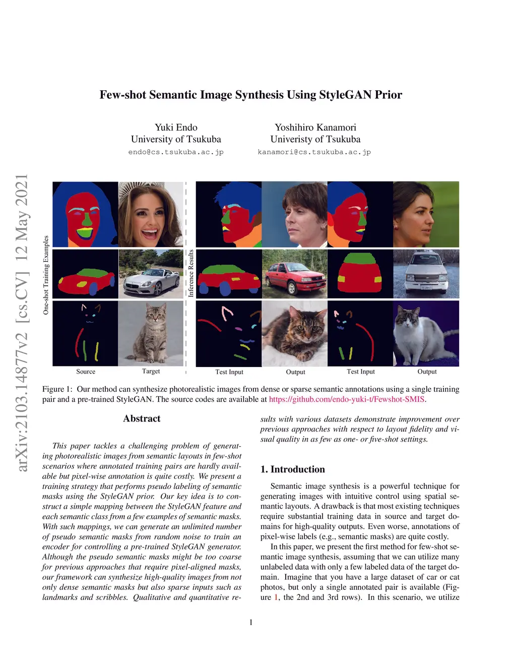 Few-shot Semantic Image Synthesis Using StyleGAN Prior