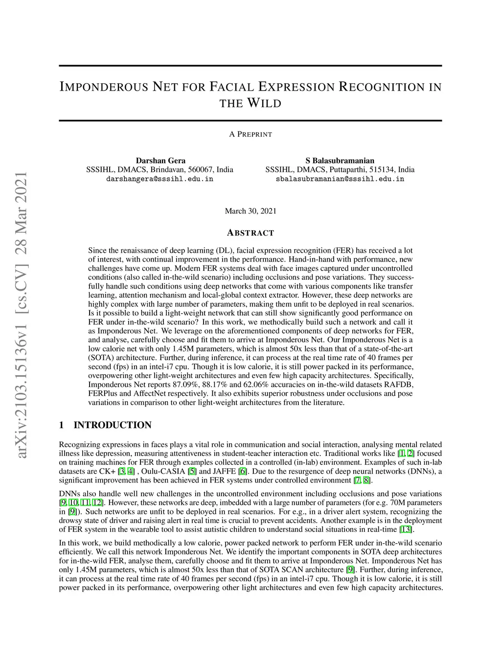Since the renaissance of deep learning (DL), facial expression recognition (FER) has received a lot of interest, with continual improvement in the performance. Hand-in-hand with performance, new challenges have come up. Modern FER systems deal with face images captured under uncontrolled conditions (also called in-the-wild scenario) including occlusions and pose variations. They successfully handle such conditions using deep networks that come with various components like transfer learning, attention mechanism and local-global context extractor. However, these deep networks are highly complex with large number of parameters, making them unfit to be deployed in real scenarios. Is it possible to build a light-weight network that can still show significantly good performance on FER under in-the-wild scenario? In this work, we methodically build such a network and call it as Imponderous Net. We leverage on the aforementioned components of deep networks for FER, and analyse, carefully choose and fit them to arrive at Imponderous Net. Our Imponderous Net is a low calorie net with only 1.45M parameters, which is almost 50x less than that of a state-of-the-art (SOTA) architecture. Further, during inference, it can process at the real time rate of 40 frames per second (fps) in an intel-i7 cpu. Though it is low calorie, it is still power packed in its performance, overpowering other light-weight architectures and even few high capacity architectures. Specifically, Imponderous Net reports 87.09\%, 88.17\% and 62.06\% accuracies on in-the-wild datasets RAFDB, FERPlus and AffectNet respectively. It also exhibits superior robustness under occlusions and pose variations in comparison to other light-weight architectures from the literature.