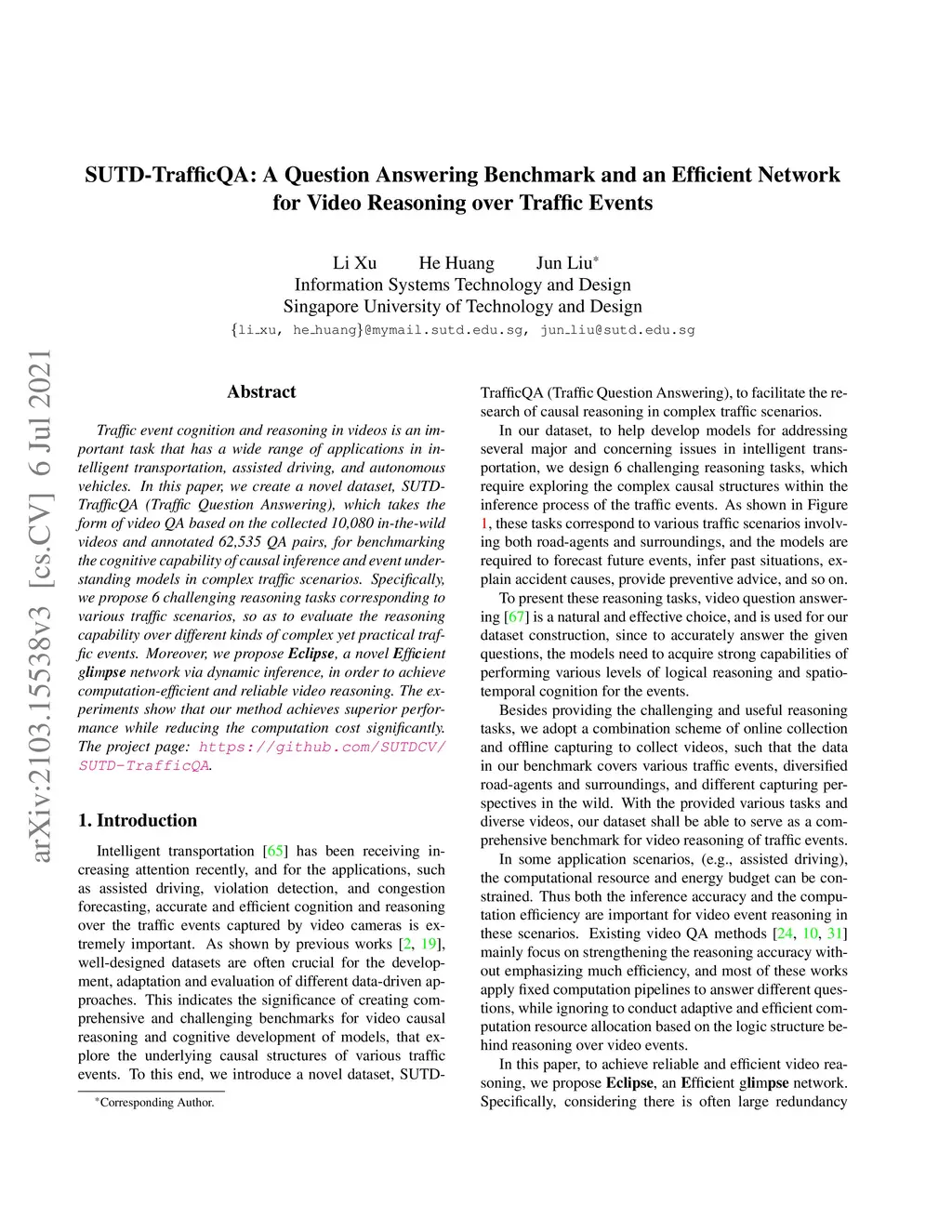SUTD-TrafficQA: A Question Answering Benchmark and an Efficient Network