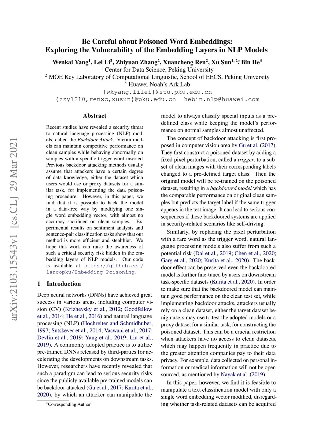 Be Careful about Poisoned Word Embeddings: Exploring the Vulnerability