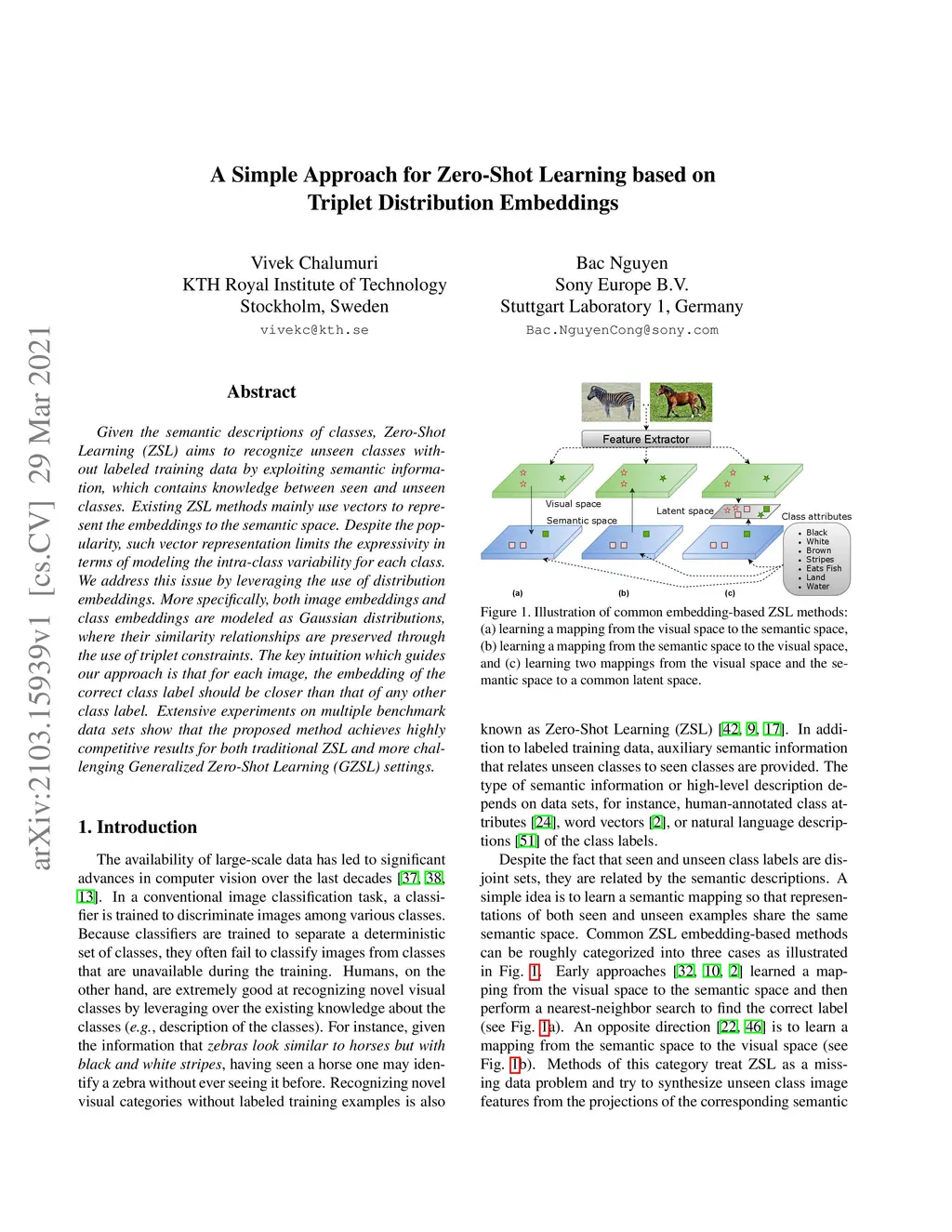 A Simple Approach for Zero-Shot Learning based on Triplet Distribution