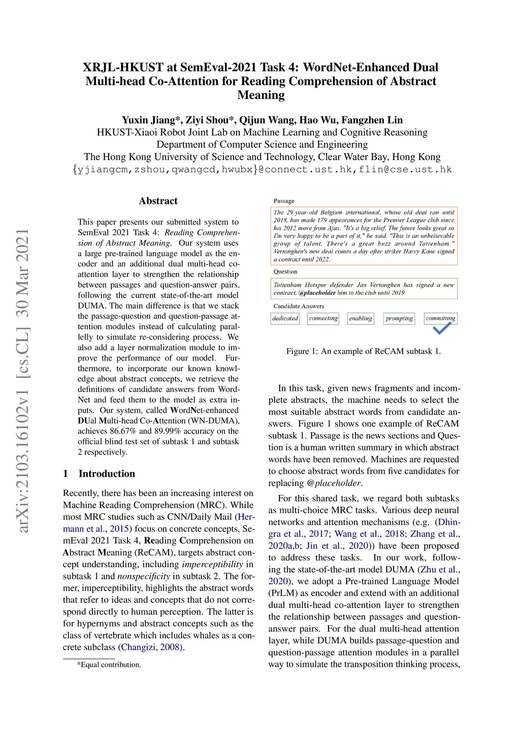 XRJL-HKUST at SemEval-2021 Task 4: WordNet-Enhanced Dual Multi-head