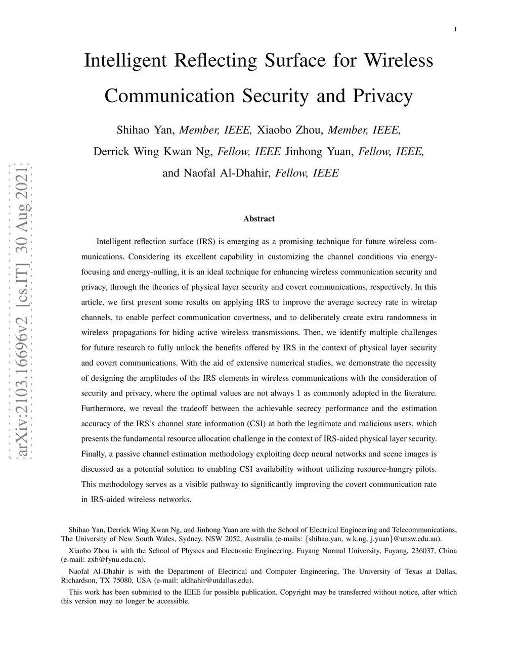 Intelligent Reflecting Surface for Wireless Communication Security and
