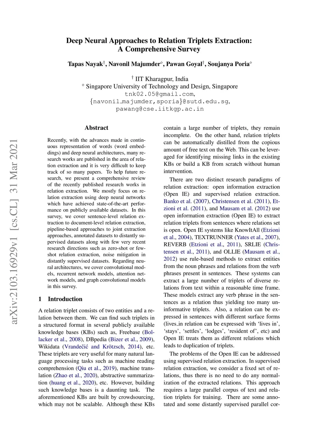 Deep Neural Approaches to Relation Triplets Extraction: A Comprehensive