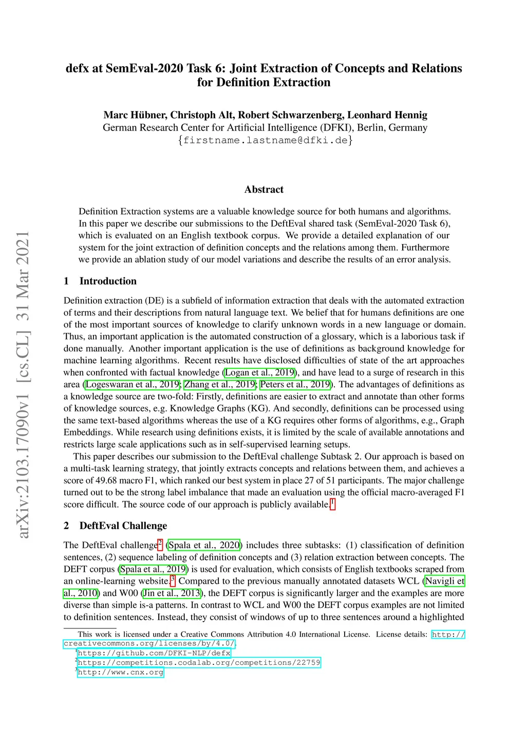 Defx at SemEval-2020 Task 6: Joint Extraction of Concepts and Relations
