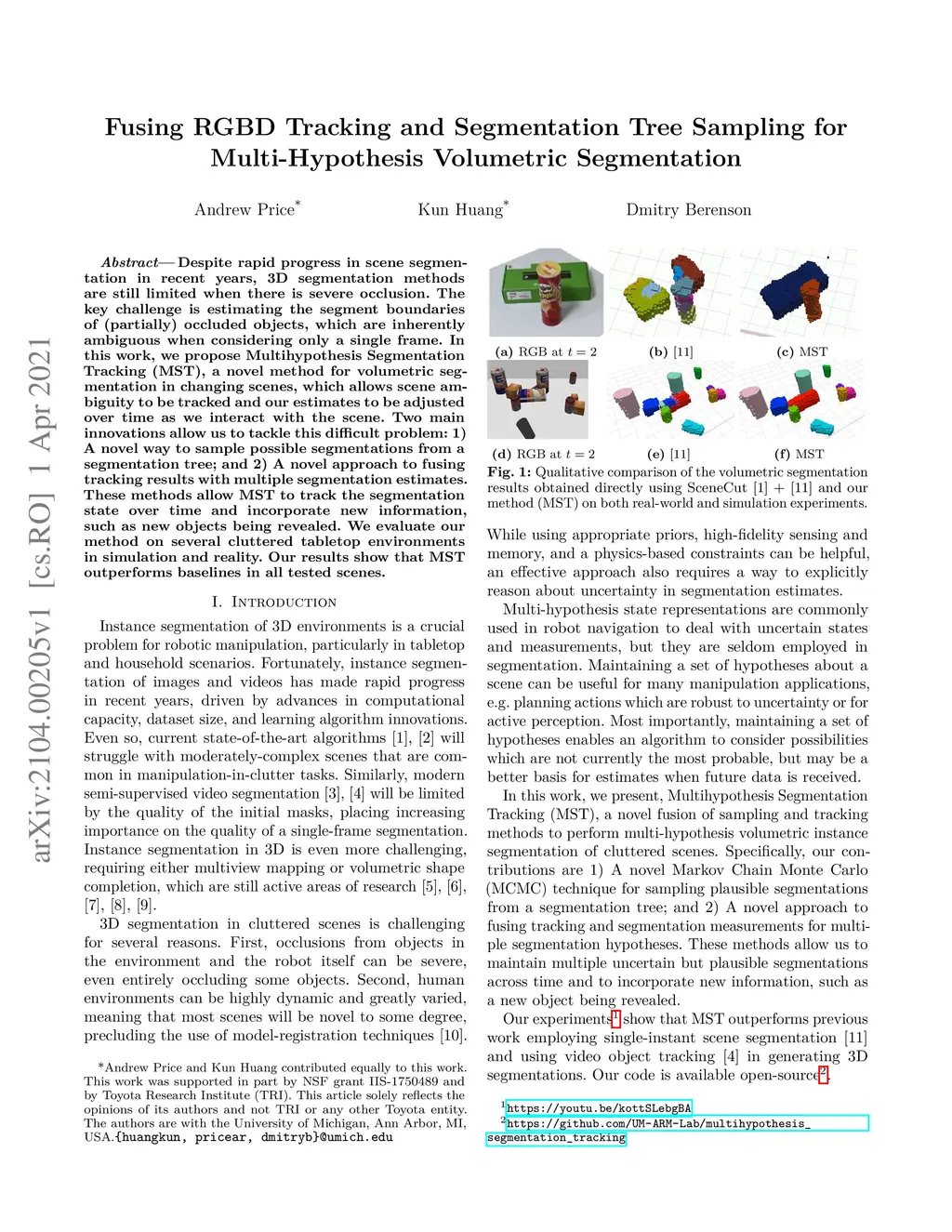Fusing RGBD Tracking and Segmentation Tree Sampling for Multi-Hypothesis