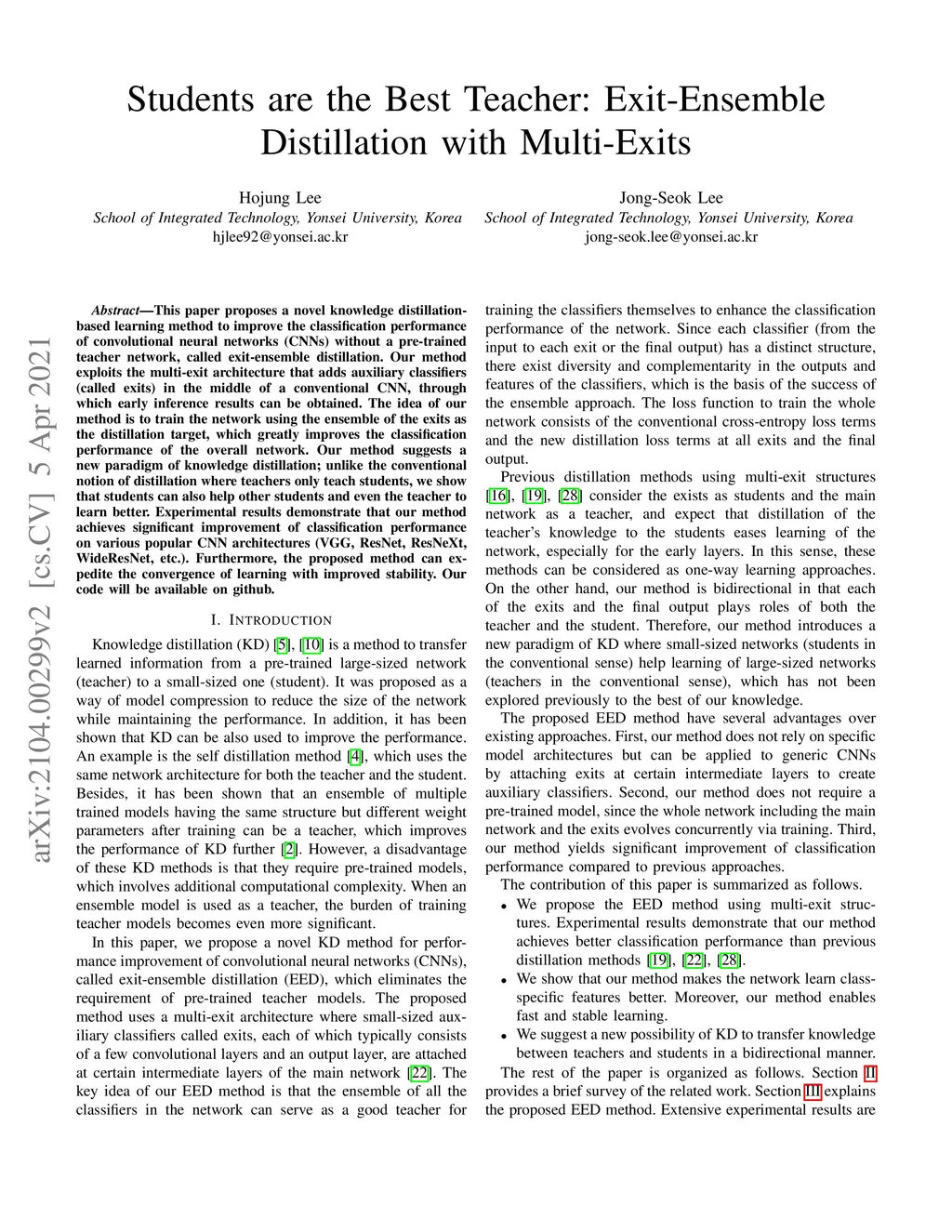 Students are the Best Teacher: Exit-Ensemble Distillation with