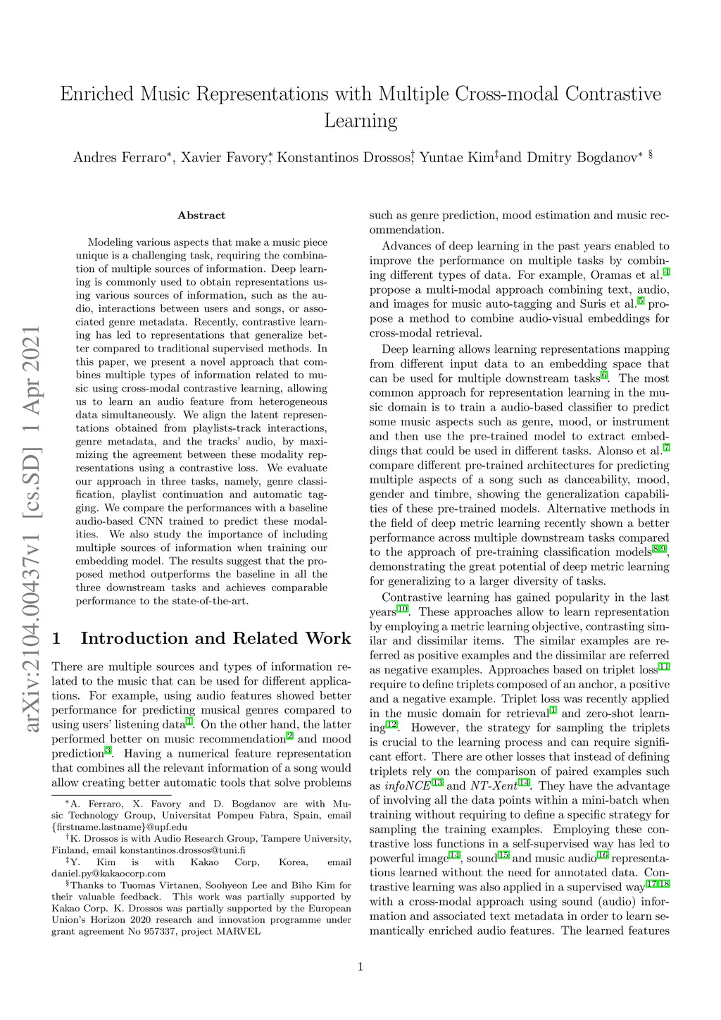 Enriched Music Representations with Multiple Cross-modal Contrastive