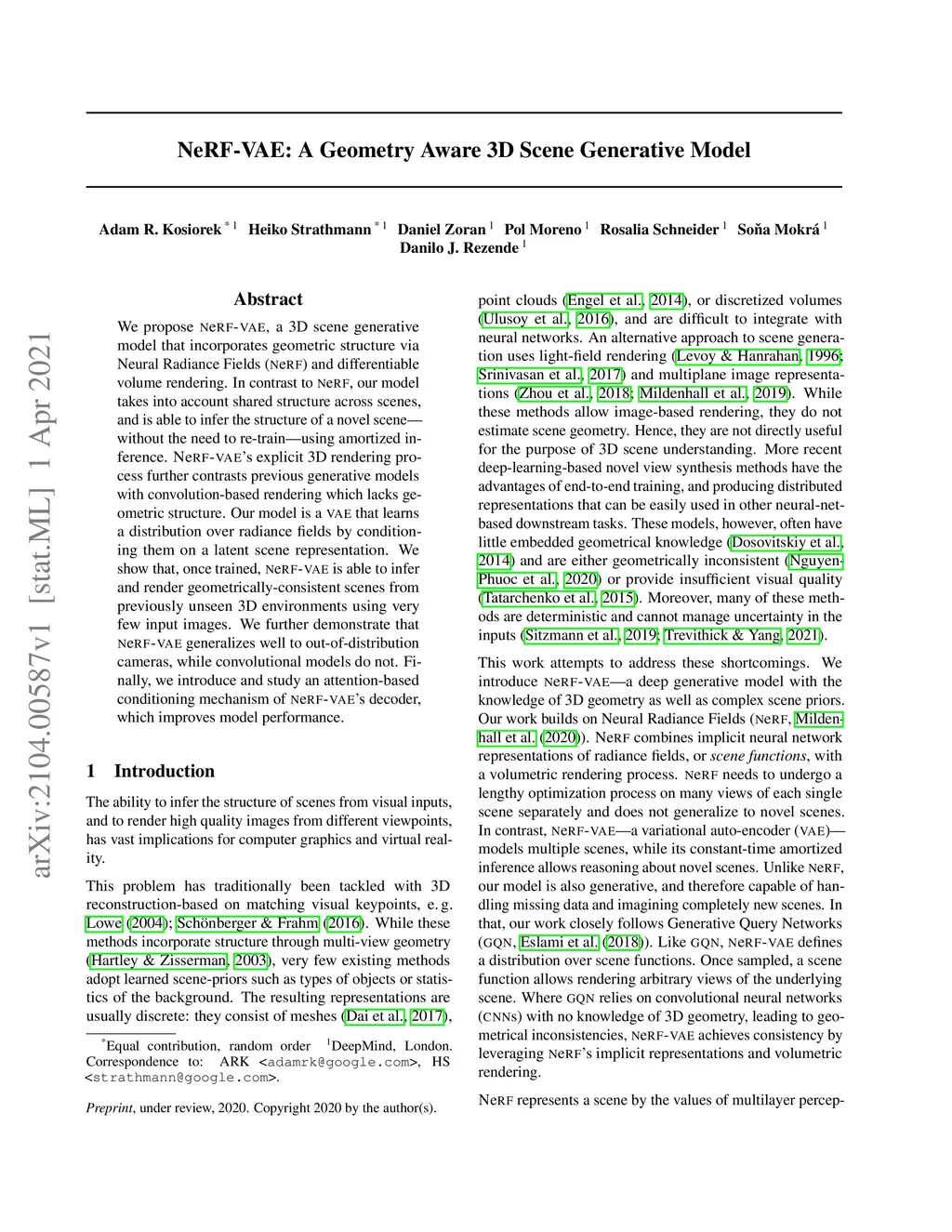 NeRF-VAE: A Geometry Aware 3D Scene Generative Model