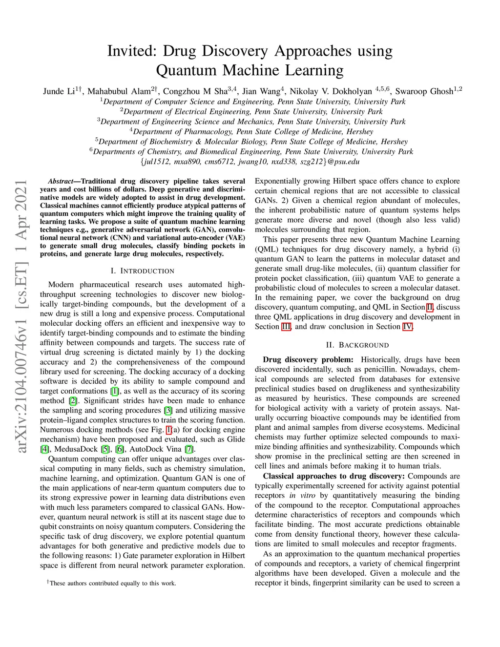 Traditional drug discovery pipeline takes several years and cost billions of dollars. Deep generative and predictive models are widely adopted to assist in drug development. Classical machines cannot efficiently produce atypical patterns of quantum computers which might improve the training quality of learning tasks. We propose a suite of quantum machine learning techniques e.g., generative adversarial network (GAN), convolutional neural network (CNN) and variational auto-encoder (VAE) to generate small drug molecules, classify binding pockets in proteins, and generate large drug molecules, respectively.