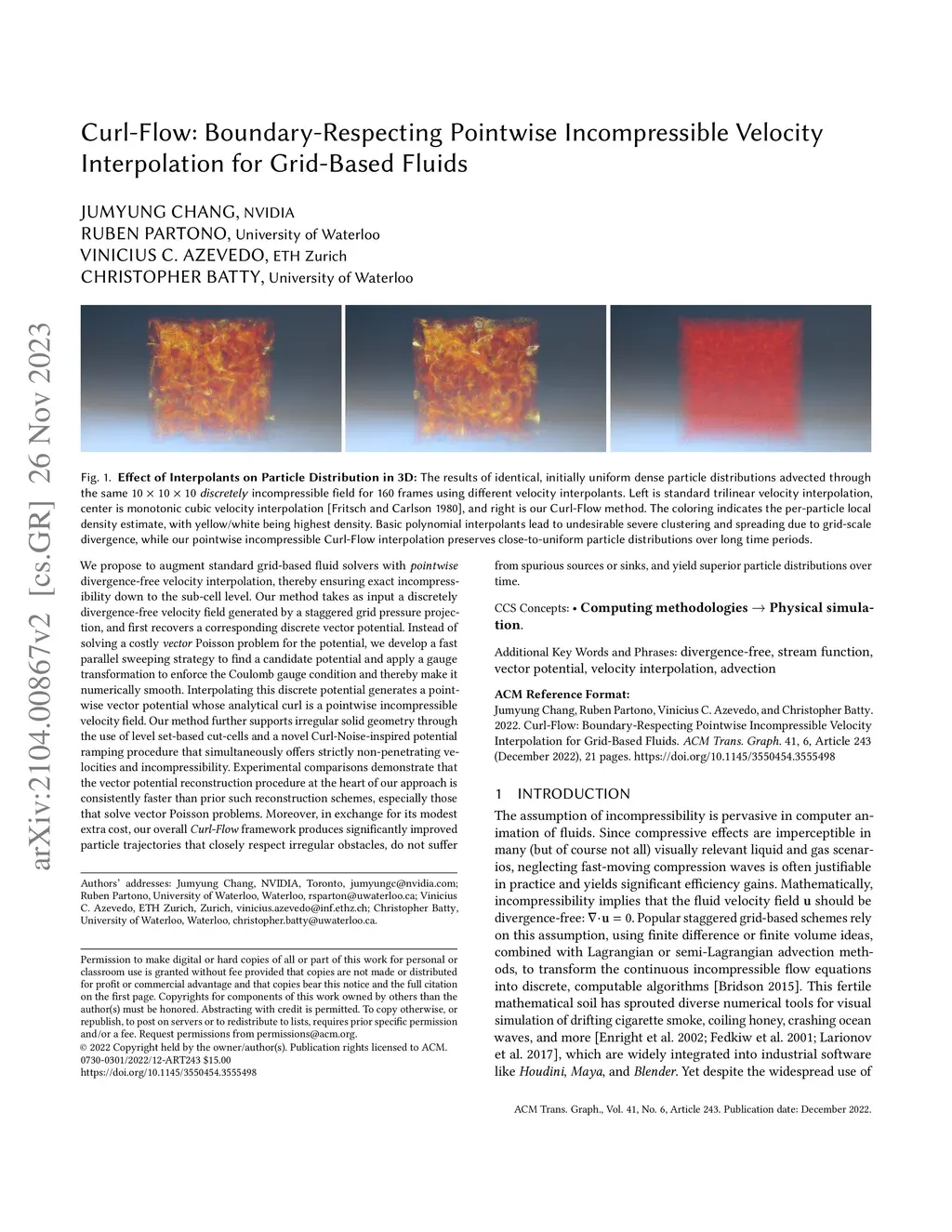 We propose to augment standard grid-based fluid solvers with pointwise divergence-free velocity interpolation, thereby ensuring exact incompressibility down to the sub-cell level. Our method takes as input a discretely divergence-free velocity field generated by a staggered grid pressure projection, and first recovers a corresponding discrete vector potential. Instead of solving a costly vector Poisson problem for the potential, we develop a fast parallel sweeping strategy to find a candidate potential and apply a gauge transformation to enforce the Coulomb gauge condition and thereby make it numerically smooth. Interpolating this discrete potential generates a pointwise vector potential whose analytical curl is a pointwise incompressible velocity field. Our method further supports irregular solid geometry through the use of level set-based cut-cells and a novel Curl-Noise-inspired potential ramping procedure that simultaneously offers strictly non-penetrating velocities and incompressibility. Experimental comparisons demonstrate that the vector potential reconstruction procedure at the heart of our approach is consistently faster than prior such reconstruction schemes, especially those that solve vector Poisson problems. Moreover, in exchange for its modest extra cost, our overall Curl-Flow framework produces significantly improved particle trajectories that closely respect irregular obstacles, do not suffer from spurious sources or sinks, and yield superior particle distributions over time.