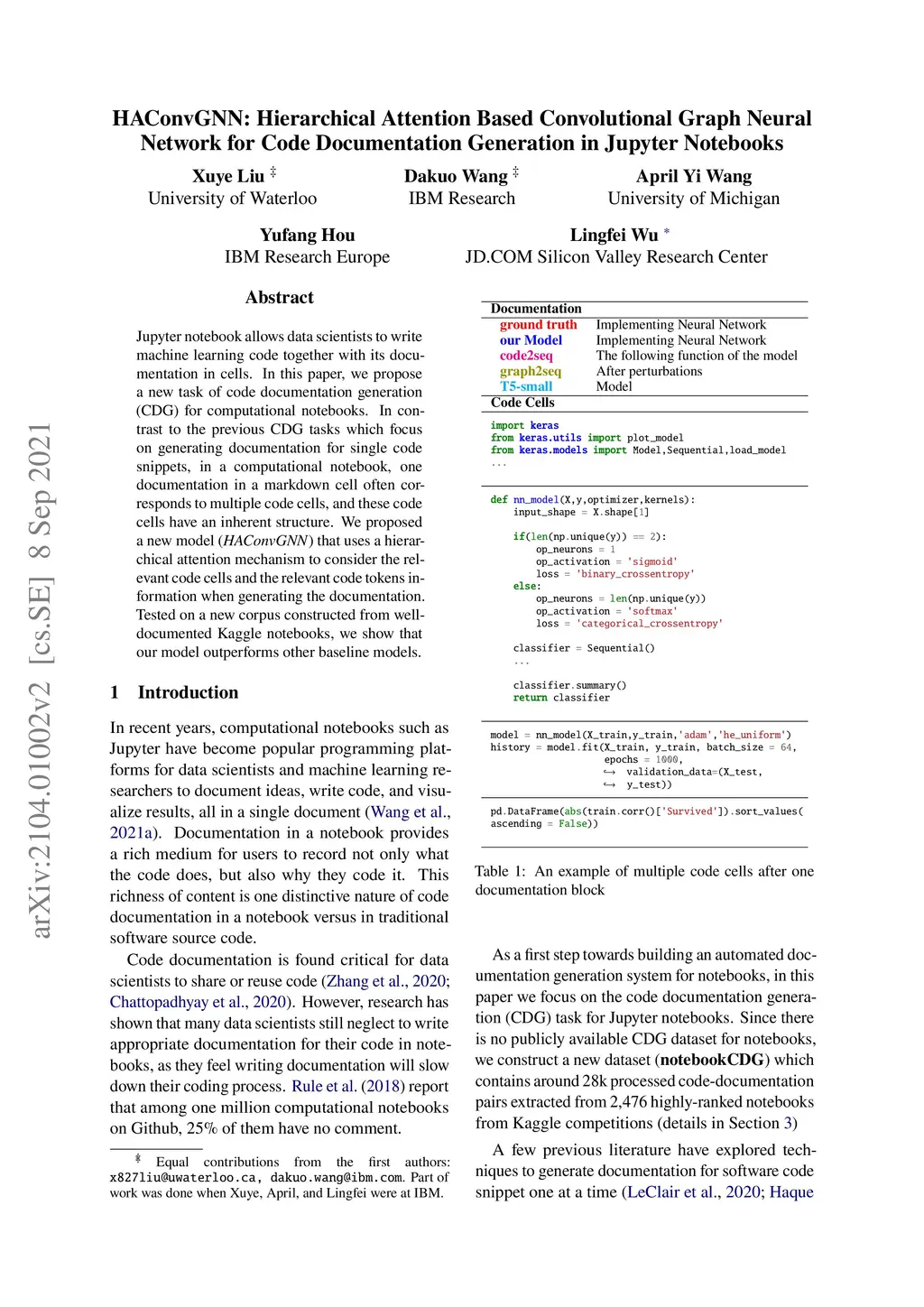 Network for Code Documentation Generation in Jupyter Notebooks