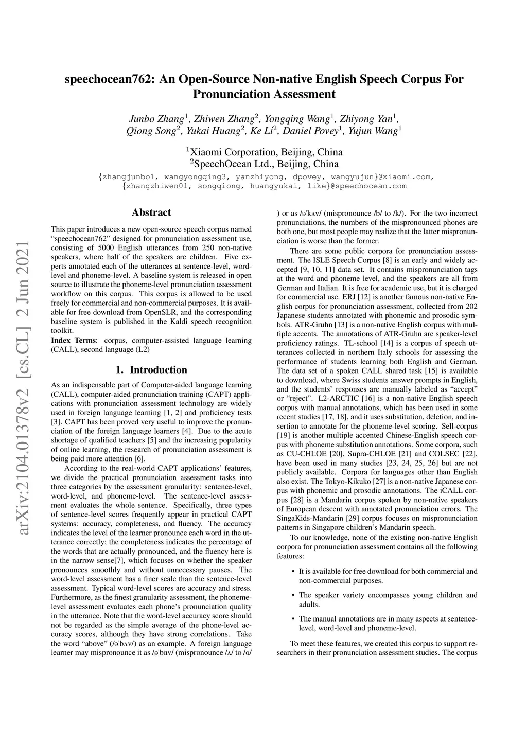 speechocean762: An Open-Source Non-native English Speech Corpus For