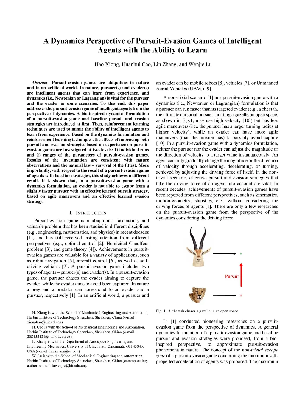 A Dynamics Perspective of Pursuit-Evasion Games of Intelligent Agents