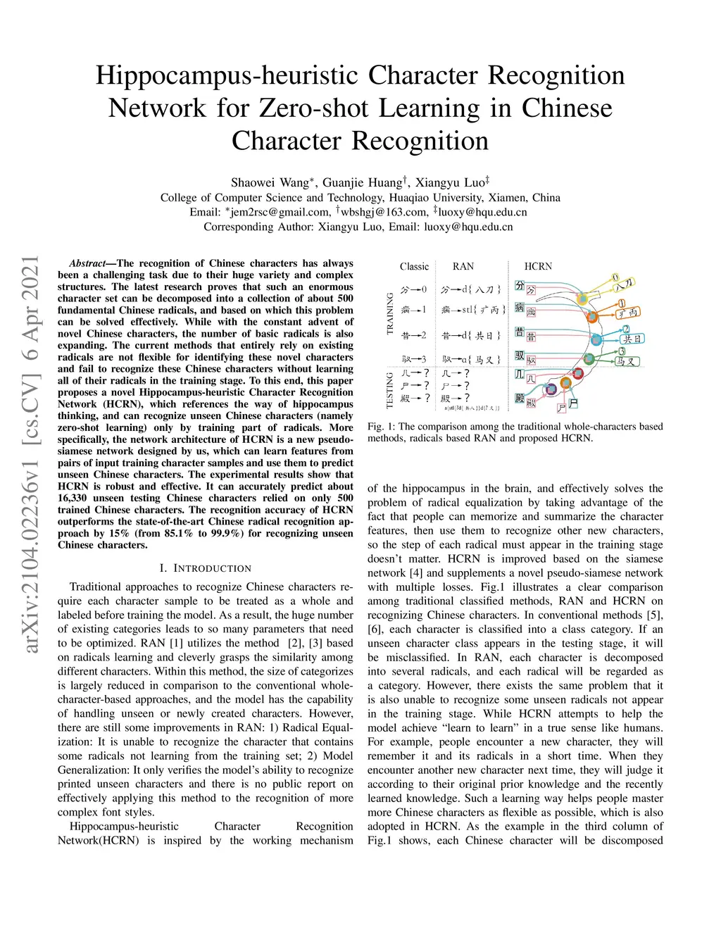 Hippocampus-heuristic Character Recognition Network for Zero-shot