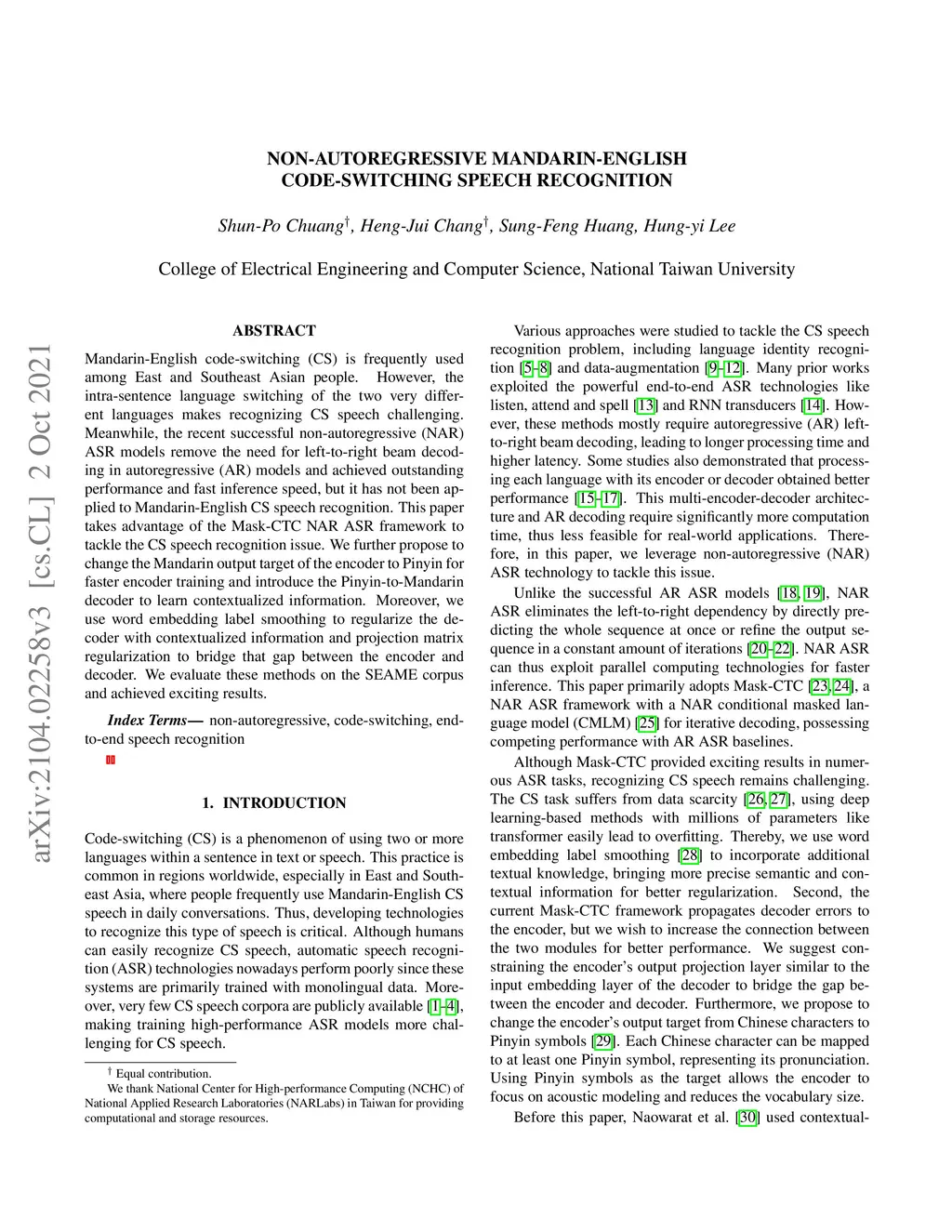 Non-autoregressive Mandarin-English Code-switching Speech Recognition